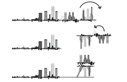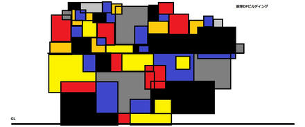 売り上げなどを面積化して色付けし高層ビルてきなものを設計する