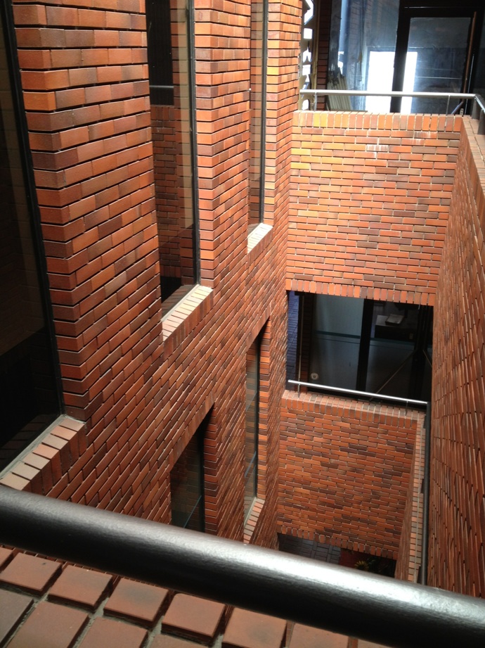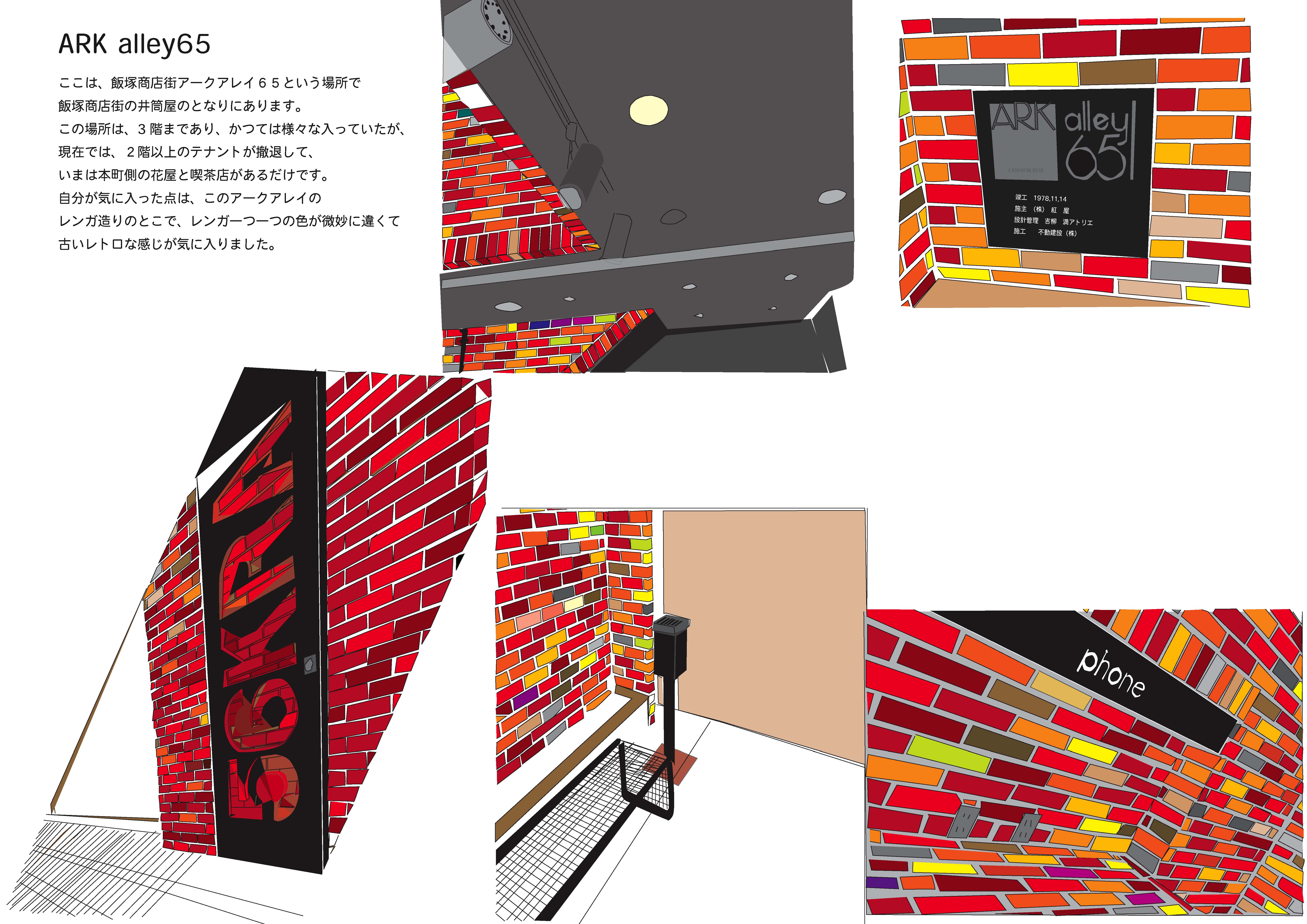 今回私が設定したテーマは、前回説明したとおり、本町商店街の一部となっている煉瓦でできた建物です。いまはテナントがほとんどはいっておらず、上の階には行けなくなっていましたが、この建物の吹き抜けのところなどとても神秘的な空間にまで感じます。