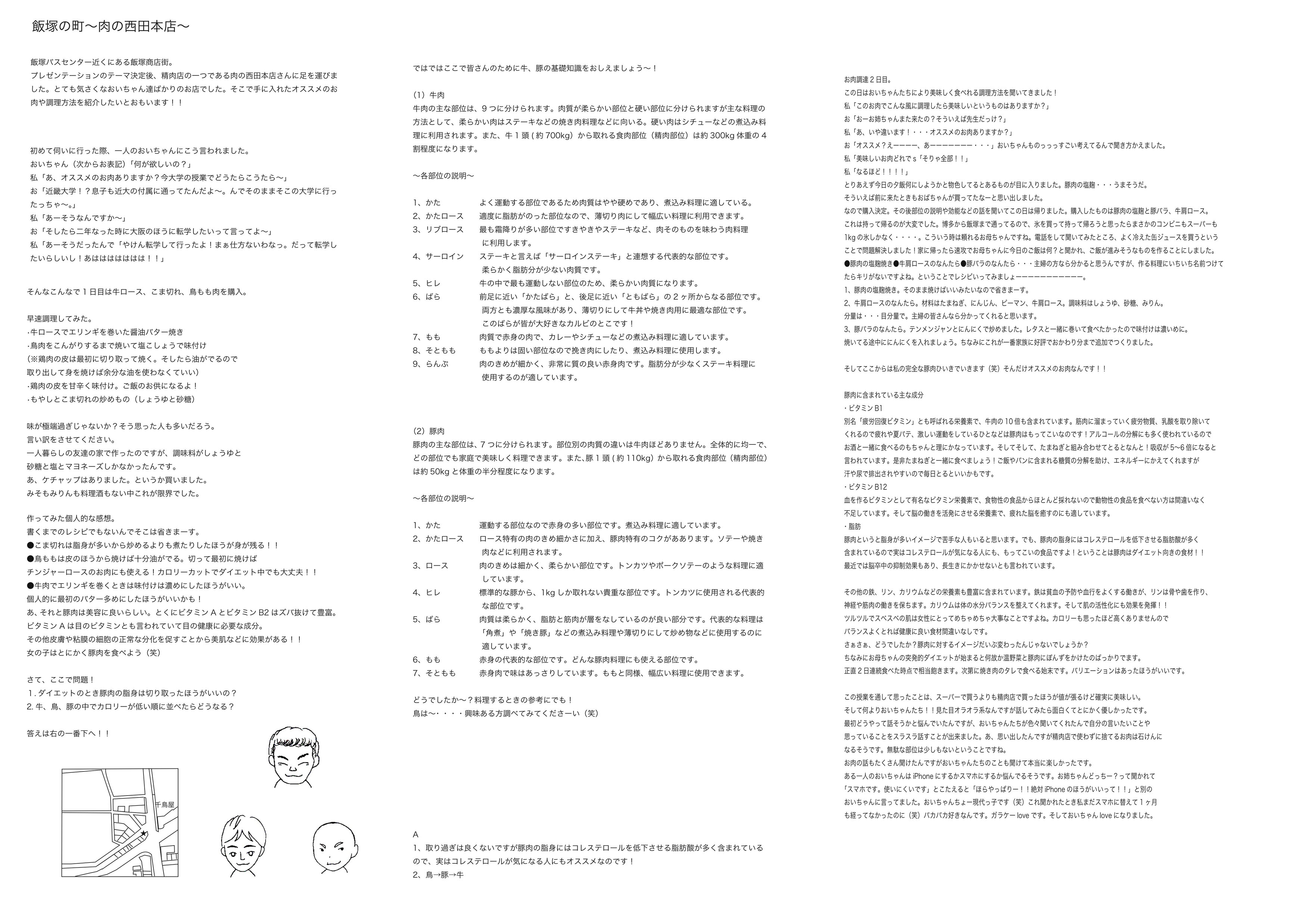 今回の課題ではテーマは市場調査にし、青果店・鮮魚店・精肉店の品揃え、及び値段の平均値などと比べる事です。これにより経済的かつ必要なものの簡単な入手が可能になると考えています。