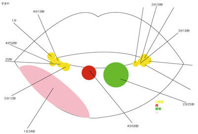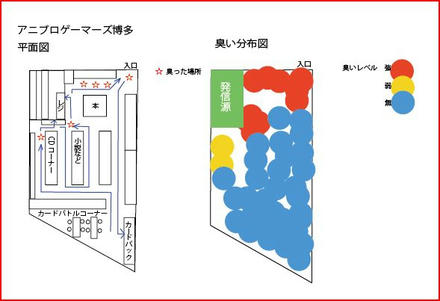 お店の平面図と臭いの分布図 6/25(土) 滞在時間19:00~19:12