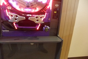 パチンコ台の回す部分。お金を入れる部分。